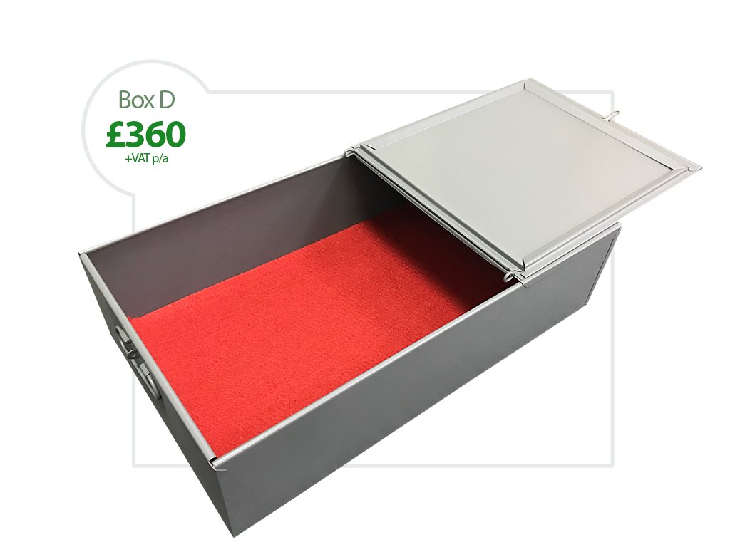 Registration is quick, discreet and straightforward. Clients’ access to the reinforced vault is by unique biometric screening and therefore, only you can access your safety deposit box. The facility is open seven days a week, including Bank Holidays. With a range of sizes and terms, the rental charge can be increased if required.